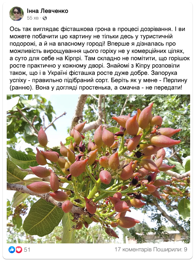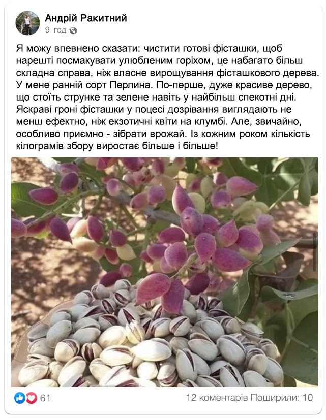 З 1 саджанця ви можете отримати від 16 кг фісташки щосезонно.